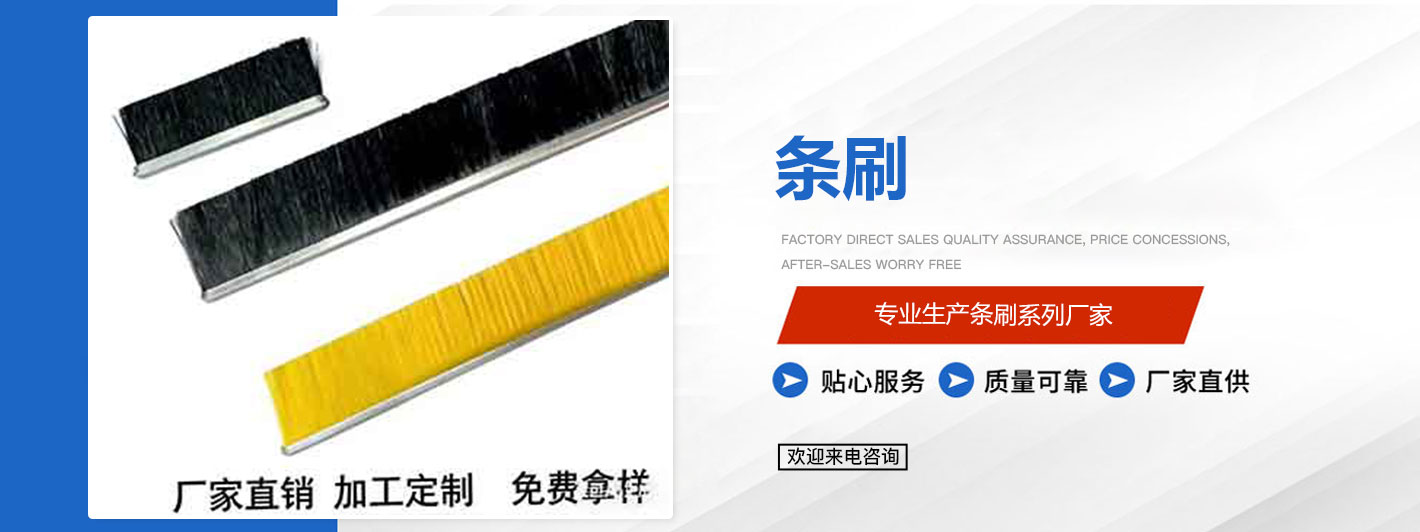 本公司是一家专业生产销售各种条刷系列厂家。本厂技术力量雄厚,加工设备齐全,检测手段完备,进一步保障了产品的高质量标准,精工制造。公司多年来,以团结向上的员工队伍,紧贴客户不同需求,创造技术含量高的产品,取得了良好的社会效益和经济效益。