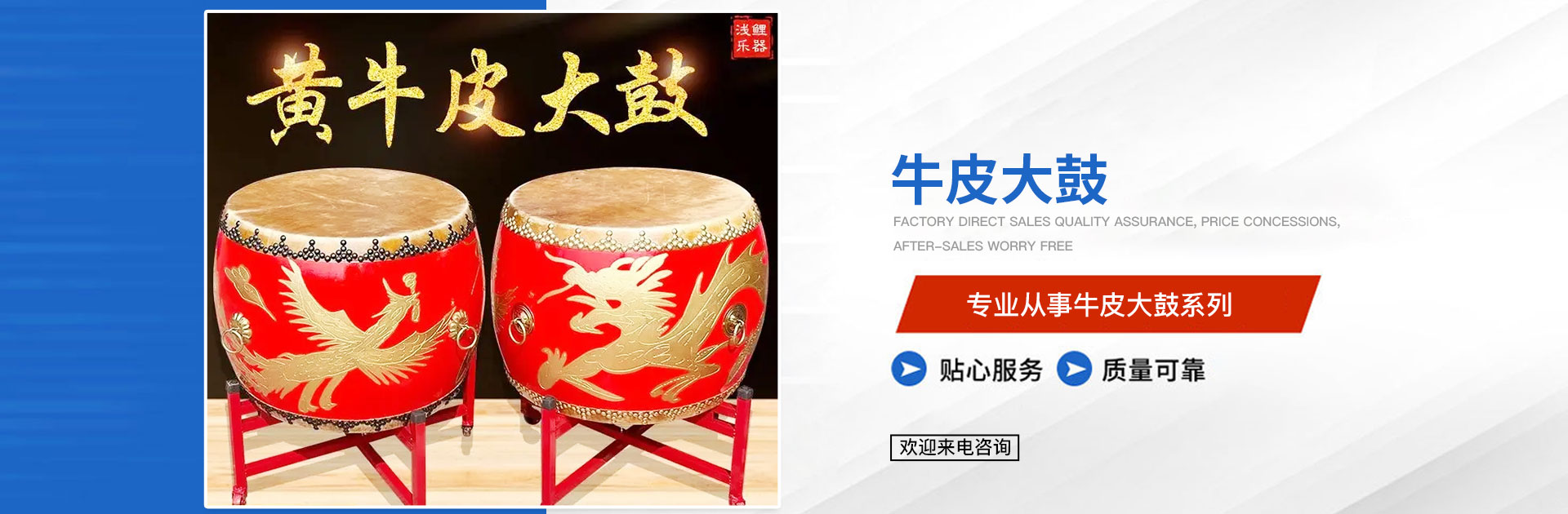 本公司是一家专业从事牛皮大鼓系列厂家。本厂技术力量雄厚,加工设备齐全,检测手段完备,进一步保障了产品的高质量标准,精工制造。公司多年来,以团结向上的员工队伍,紧贴客户不同需求,创造技术含量高的产品,取得了良好的社会效益和经济效益。 <br /> ...